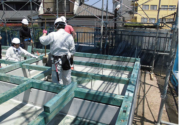 基礎設計・基礎工事のサポートと、建方工事に関する事前及び建方当日指導を行います。 本工法に特別な技術は必要ありませんが、より効率的で確実な建方作業のため、 サポートさせていただきます。